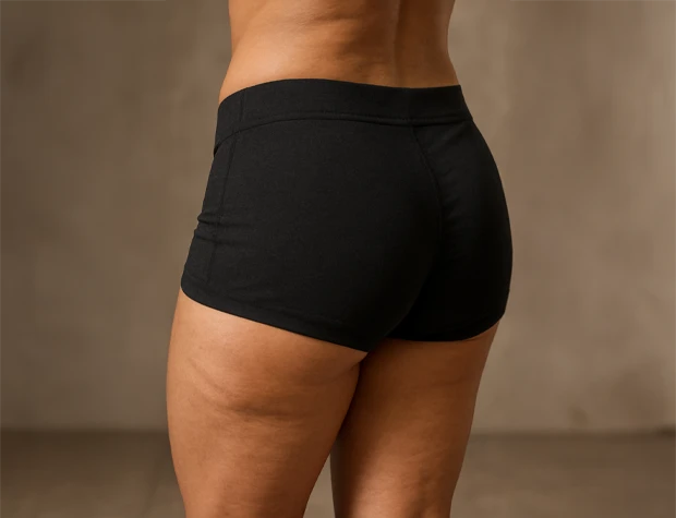 - Glúteos empinados e redondos — sem aparelhos.